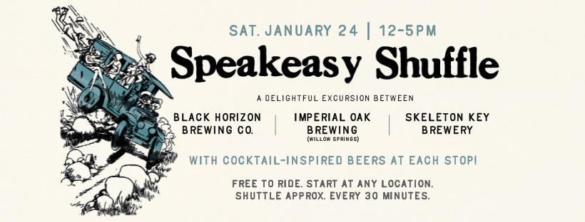 Save that date (1/24) now for the “Speakeasy Shuffle,” a delightful, Roaring ’20s-inspired excursion between Skeleton Key Brewery(Woodridge,IL), Imperial Oak Brewing (Willow Springs location), and Black Horizon Brewing Company (Willowbrook, IL)!